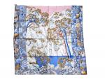 HERMES Paris " Sieste au paradis" par Aline Honoré Carré en twill silk bleu, avec sa boite 140 x 140 cm