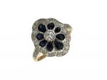 BAGUE en or jaune sertie de diamants et saphirs poids 3.2 g TDD 52