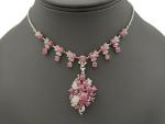 PARURE en alliage d'or 585 millièmes et argent sertie de rubis cabochon et composée d'un bracelet, un pendentif, une bague, paire de boucles d'oreilles et un collier poids brut 61.3 g, travail étranger