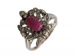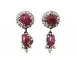 PARURE en alliage d'or 585 millièmes et argent sertie de rubis cabochon et composée d'un...