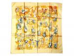 HERMES Paris " Concerto" par Jean-Louis Clerc, 1ere édition en 1963 ,re 1996 Carré en soie imprimée, fond orange 90 x 90 cm