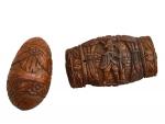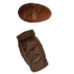 OEUF et BOITE A PRISER en corozo sculpté XIXème L.: 7 et 8.5 cm (éclats et manques)