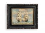 ECOLE FRANCAISE dans le goût des écoles hollandaises du XVIIème Bataille navale Huile sur toile 30 x 40 cm (craquelures)