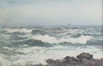 James AITKEN (act.1880-1935) Côte rocheuse avec voilier au loin Aquarelle signée en bas à droite 33 x 49 cm à vue
