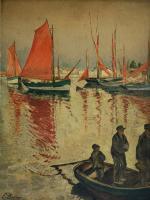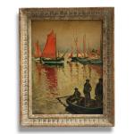 E. BUCHERON (XIX-XXème) L'Ile d'Yeu, retour de pêche à Port Joinville Huile sur panneau signée en bas à gauche, située au dos 28.5 x 21.5 cm