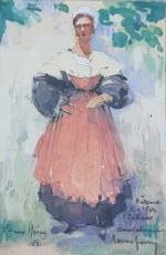 Louis GARIN (1888-1959) Ile aux moines, bretonne, 1952. Aquarelle et gouache signée et dédicacée en bas à droite, située et datée en bas à gauche 10 x 14 cm