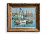 Pierre Philippe BERTRAND (1884-1975) L'Ile d'Yeu, barques à Port Joinville Huile sur toile signée en bas à droite 46 x 55 cm