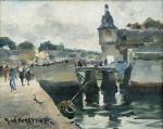 René LEFORESTIER (1903-1972) Concarneau, l'accès à la ville close par la rue Vauban Huile sur toile signée en bas à gauche 21.5 x 27 cm