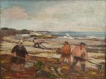Paul SAVIGNY DELAVALLEE (XXème) Les ramasseurs de goémon Huile sur panneau signée en bas à gauche 26.5 x 35 cm