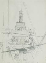 Léon HAFFNER (1881-1972) A bord du croiseur Dessin signé en bas à droite 24 x 17 cm à vue Léon Haffner, nommé peintre de la Marine en 1918