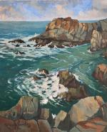 ECOLE FRANCAISE du XXème Les rochers Huile sur toile signée en bas à gauche 73 x 60 cm (accidents)
