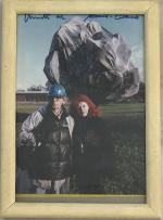 CHRISTO [bulgare] (1935-2020) et JEANNE-CLAUDE [marocaine] (1935-2009) Autoportrait Carte postale signée au feutre 18 x 12.2 cm à vue