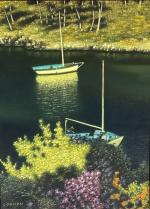 Jean Yves COULIOU (1916-1995) Moellan sur Mer, le printemps en Bretagne Huile sur toile signée en bas à gauche, située au dos 73 x 54 cm Provenance: - galerie Moyon Avenard (étiquettes au dos)