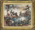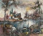 Claude DUMONT (né en 1938) Vendée, les bateaux de pêche Huile sur toile signée en bas à droite, contresignée et titrée au dos 47 x 55 cm