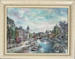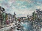 Claude DUMONT (né en 1938) Paris, l'île de la Cité le quai des orfèvres Huile sur toile signée en bas à droite, contresignée et titrée au dos 46 x 61 cm