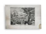 d'après Nicolas POUSSIN (1594-1665), gravée par Jean PESNE (1623-1700) Aestas, ou l'Esté Gravure 61 x 87.5 cm (pliures, importantes traces d'humidité)
