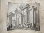 attribué à Giovanni Paolo PANINI (1691-1765) Architecture animée Pierre noire, plume et encre brune, lavis gris 19 x...