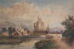 Frédéric François D'ANDIRAN (1802-1876) Paysage suisse Aquarelle signée en bas à gauche 21 x 32 cm à vue (piqûres, déchirures)