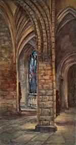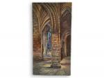 Emile ROZE (début XXème) Intérieur d'église Huile sur toile signée en bas à gauche 41 x 21.5 cm