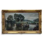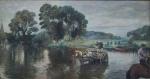 Charles MILCENDEAU (1872-1919) La corvée d'eau, 1913. Huile sur toile signée et datée en bas à gauche 69.5 x 129 cm