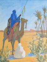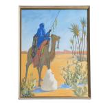 ECOLE ORIENTALISTE du XXème Touareg sur son chameau Gouache signée en bas à droite 64 x 49 cm à vue