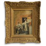 Denis Pierre BERGERET (1846-1910) Les marmitons en cuisine Huile sur toile signée en bas à droite 34 x 26 cm