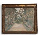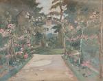ECOLE FRANCAISE début XXème Le jardin fleuri, 1932. Aquarelle signée, datée et avec envoi en bas à gauche 44.5 x 53.5 cm à vue