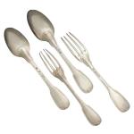 Deux FOURCHETTES et deux CUILLERES en argent, modèle filets Paris, fin XVIIIème Poids: 350 gr