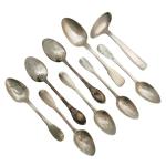 LOT en argent comprenant huit cuillères à thé et une cuillère à sauce Poinçons Coq, Minerve et anglais Poids: 168 gr