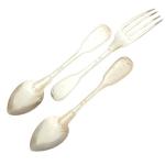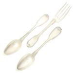 Deux CUILLERES et une FOURCHETTE en argent, modèle filets Paris, 1819-1838 Poids: 266 gr
