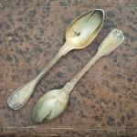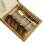 Dix-huit CUILLERES A THE en vermeil, modèle filets coquilles Deux Vieillard et seize Minerve Poids: 552 gr