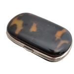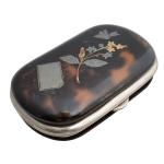 PORTE MONNAIE en écaille piquée à décor d'un cartouche, d'une branche et d'un papillon 5 x 8 cm