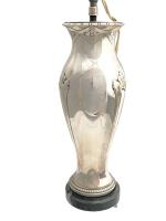 VASE en argent à décor Art Nouveau de feuillage, frises de godrons et de fleurs dans des losanges, la base en marbre, monté en lampe