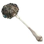 CUILLERE A SAUPOUDRER en argent, modèle violoné feuillagé, chiffrée Minerve L.: 21 cm Poids: 44 gr