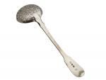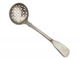 Petite CUILLERE A SAUPOUDRER en argent, modèle uniplat, gravée d'un lion tenant une flèche Travail anglais L.: 15 cm Poids: 37 gr
