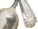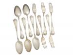 Suite de cinq COUVERTS en argent, modèle feuillagé, chiffrés Minerve. Orfèvre: Emile PUIFORCAT Poids: 840 gr (une fourchette légèrement tordue)