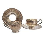 Paire de TASSES et leurs SOUCOUPES en argent Minerve. Orfèvre: Veuve BOIVIN, insculpation en 1897 H. (tasse):...