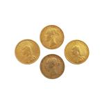 Quatre PIECES or Souverain, Victoria, 1852, 1872, 1889 et 1891 Lot conservé en banque, vendu sur désignation