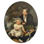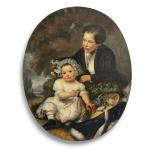 Huile sur toile ovale datée, porte une signature en bas à gauche