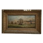 ECOLE FRANCAISE fin XIXème Voilier devant la ville forte Huile sur panneau 17.5 x 36 cm (xylophages)