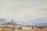 Gaspard GOBAUT (1814-1882) Scène de bataille, probablement le combat des Oliviers lors de la campagne d'Algérie Aquarelle signée en bas à gauche 12.5 x 18.8 cm (traces d'humidité)