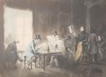 ECOLE FRANCAISE fin XIXème La lecture des journaux au salon Fusain et aquarelle 16.5 x 22.5 cm à vue