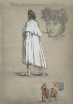 attribué à Maurice SAND (1823-1889) Etude de personnages Dessin avec rehauts 15 10.8 m (piqûres)