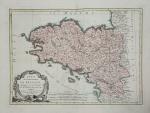 BONNE, R. Carte du Gouvernement de Bretagne. Paris, Lattré, 1771. Col. ancien. Bel exemplaire sur papier fort en
