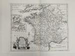 BOWEN, E. Nuova ed Esatta carta della Francia. . . Londres, 1752. Noir et blanc. Petit trou de ver en bas du pli