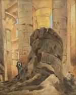 Georges CLAIRIN (1843-1919) Egypte, vue du temple de Karnak Huile sur panneau signée en bas à droite 39 x 31.5 cm à vue