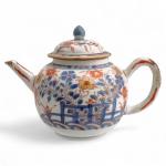 CHINE Théière couverte en porcelaine à décor Imari XVIIIème H.: 13 cm (l'anse avec importants sauts d'émail)