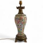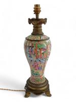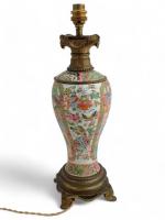 VASE en porcelaine de Canton de forme balustre monté en lampe. Chine, XXème siècle H: 36 cm