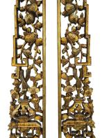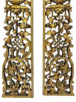 CHINE Deux éléments en bois sculpté, peint et doré 24 x 184.5 cm (accidents et manques)