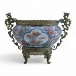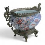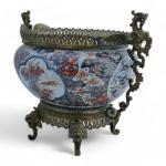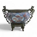 JAPON Jardinière en porcelaine à décor Imari, les montures en bronze H.: 33 cm l.: 46 cm P.: 27 cm